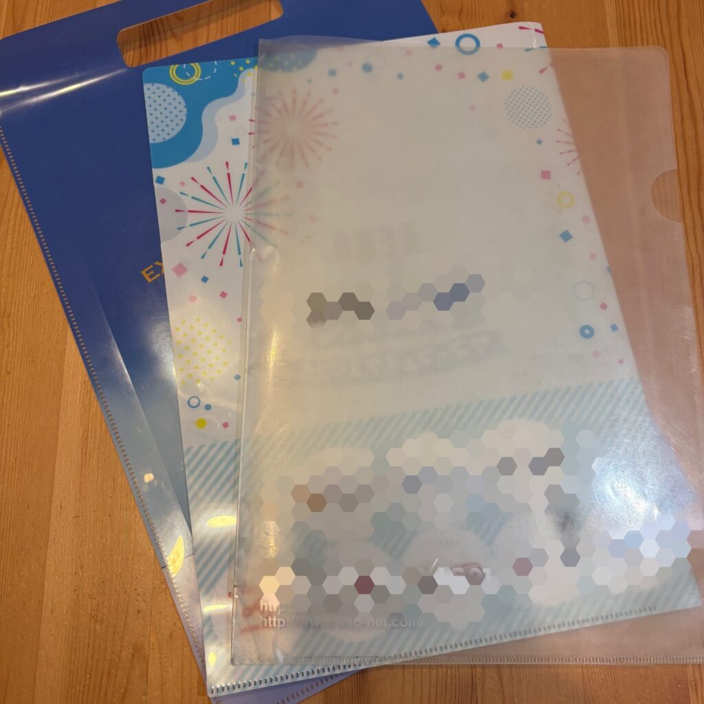 塾やイベントのロゴ入り。汚れや劣化があるもの、使用しないものを処分。