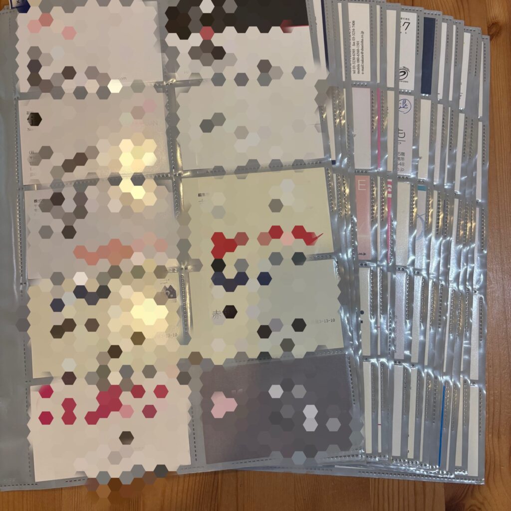 以前の仕事の名刺が大量に入ったファイルと、古い英語教材、どちらも使わないのでまとめて処分。